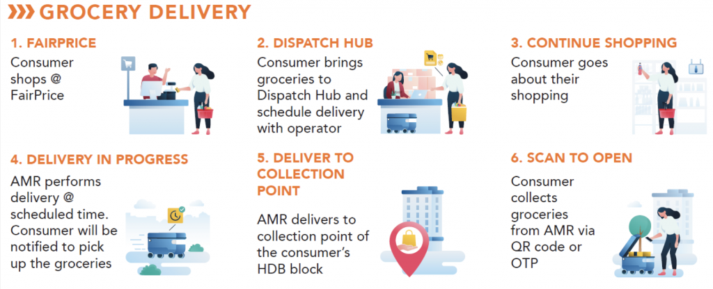 ● CAMELLO 配送機(jī)器人將通過(guò)上述 7 個(gè)代收點(diǎn)/組屋 (HDB) 街區(qū)通過(guò)道路和公園連接器進(jìn)行配送。
